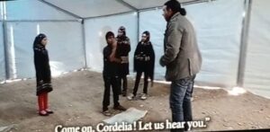 يقول نوار بلبل، رداً على سؤال منصة إرادة: هل كان شكسبير في الزعتري حقاً؟ نعم، كان هناك، وكان حضوره عظيماً. لقد اخترت شكسبير لأنني شخصياً مغرم به ككاتب مسرحي، ثم إنني أردت أن أجسّد مقولة هاملت: “نكون أو لا نكون” لتكون مقولة أطفال الزعتري والسوريين. ثم إن الملك لير، لو جرّدناها من السياسة، فهي حكاية للأطفال. وعن سؤالنا: نوار بلبل الفنان الثائر الذي خرج في المظاهرات ضد الطغيان والاستبداد شيء، ونوار مخرجاً بين الأطفال اللاجئين شيء آخر، ما الذي فعله الأطفال بك، وماذا فعلت بهم؟ يقول: أن تعمل مع طفل يعيش أقسى أنواع العنف السياسي بالقمع، والحربي بالقصف، والأسري، وتخرج بنتيجة رائعة. ففي الأيام الأولى، كلما قابلتهم، يصرخون: “تكبير”، ويردّدون: “الله أكبر… الله أكبر”، ولا شيء غير ذلك. لكن في الأيام الأخيرة، بعد المعايشة والعمل في المسرح، صرت أقرأ في عيونهم جملة هاملت: “نكون أو لا نكون”.